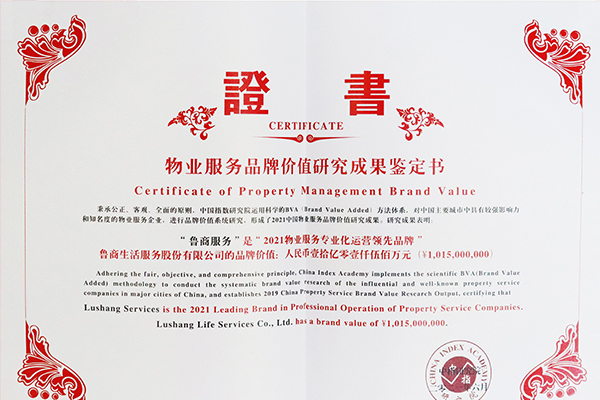 物業(yè)服務(wù)品牌價值研究成果鑒定書